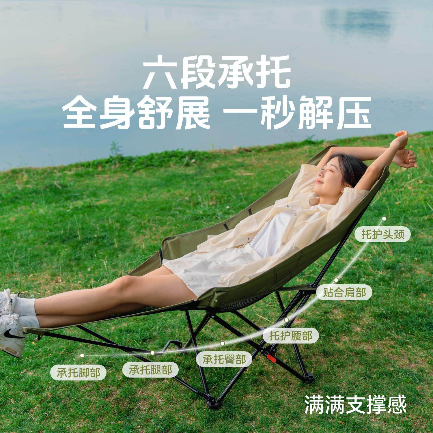 天户外折叠躺椅高靠背露营椅子便携式办公室午休沙滩椅月亮椅钓鱼椅