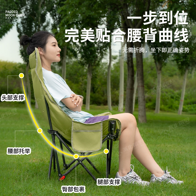 高靠背月亮椅露营椅户外可折叠椅便携躺椅钓鱼椅凳沙滩椅野餐桌椅