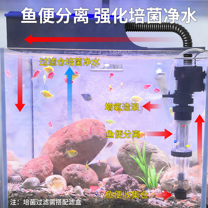 天猫森森鱼马桶鱼缸三合一循环水泵鱼缸过滤器鱼便分离吸便粪便收集器