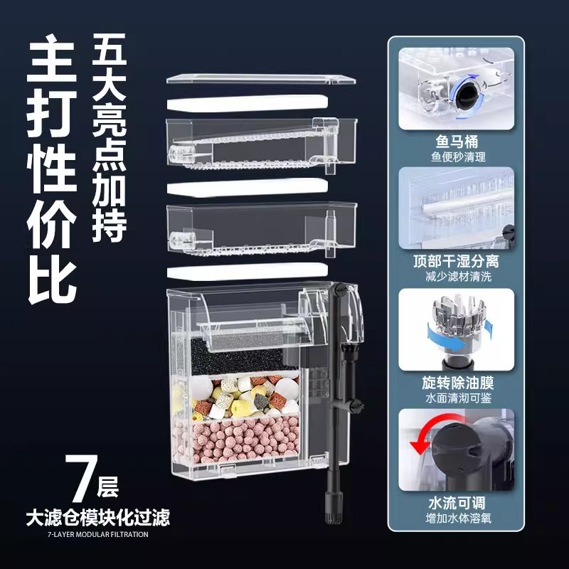 森森壁挂瀑布式鱼缸过滤器 鱼马桶净水循环三合一制氧过滤一体机