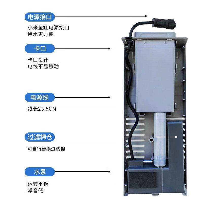 天小型鱼缸USB过滤器净水循环增氧三合一迷你壁挂式鱼缸过滤一体机