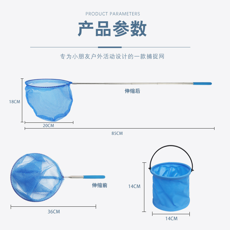 天儿童抄网抓蝴蝶捞鱼网捕鱼网兜渔具小孩可伸缩杆捞小鱼缸金鱼捕鱼