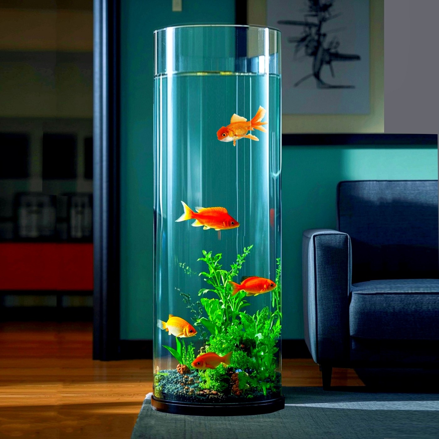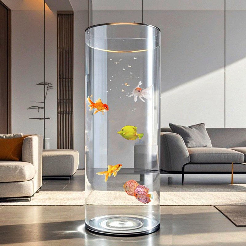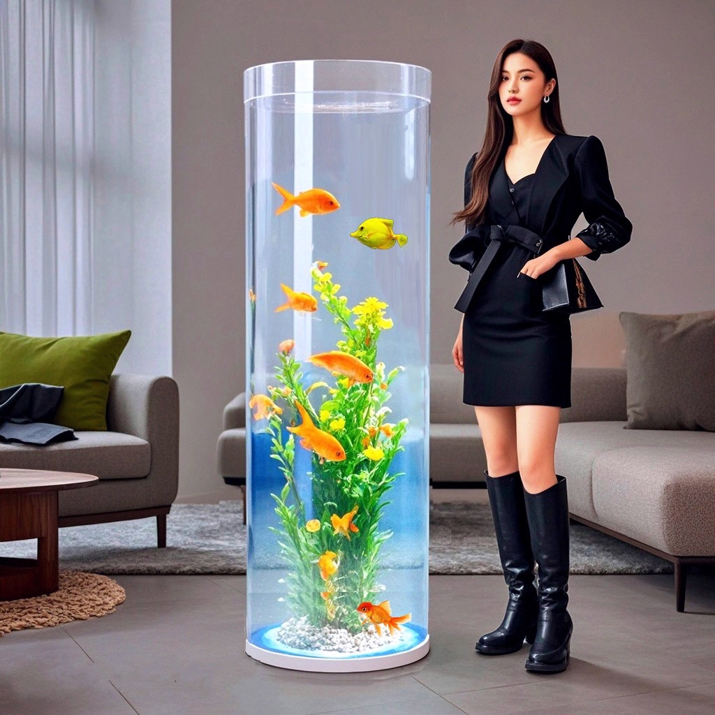 这款圆柱型鱼缸是一款专为现代客厅设计的小型落地立式水族箱,采用高透明亚克力材质,轻盈坚固且抗冲击性强。独特的负压设计有效维持缸内水位稳定,搭配高筒加高结构,营造出立体通透的观赏效果,适合养鱼、水草造景或空气凤梨等。360°无死角视野,让鱼儿在空间中自由穿梭,宛如一件流动的艺术品。底部配有隐藏式过滤系统,运行静音,维护简便。整体造型简约优雅,不占空间,轻松融入家居、办公室或商业场所,为生活增添一抹灵动与静谧。是追求品质与美感用户的理想之选。