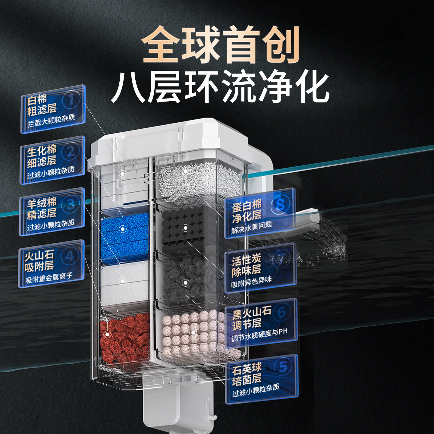yee鱼缸过滤器制氧过滤一体机净水循环三合一小型瀑布壁挂过滤器