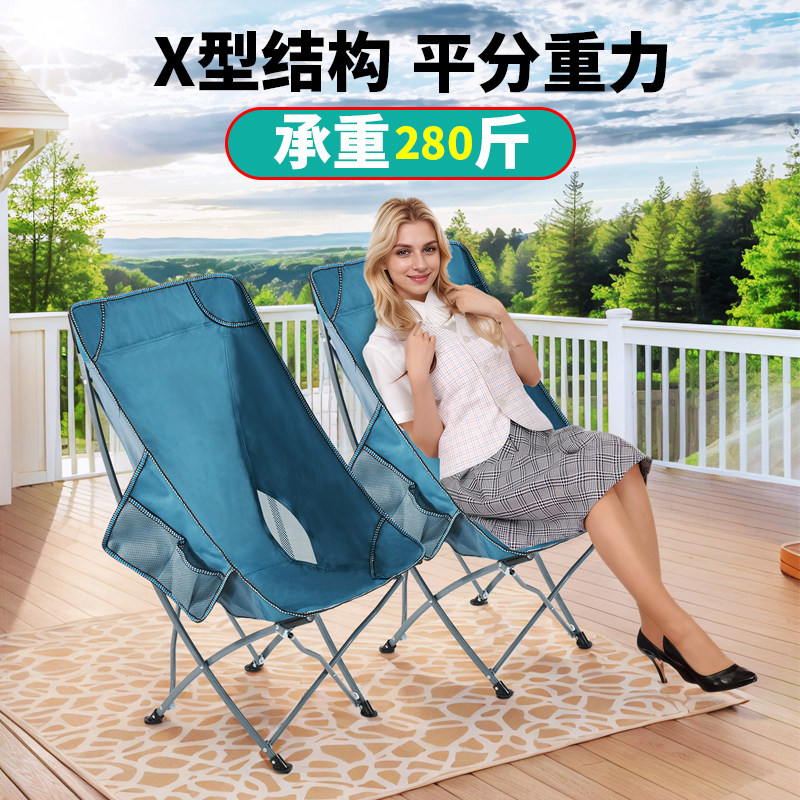 高靠背月亮椅露营椅户外可折叠椅便携躺椅钓鱼椅凳沙滩椅野餐桌椅