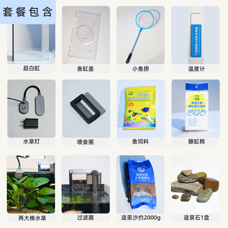 淘宝超白玻璃客厅家用办公室长方形溪流生态缸水草植物鱼缸造景全套