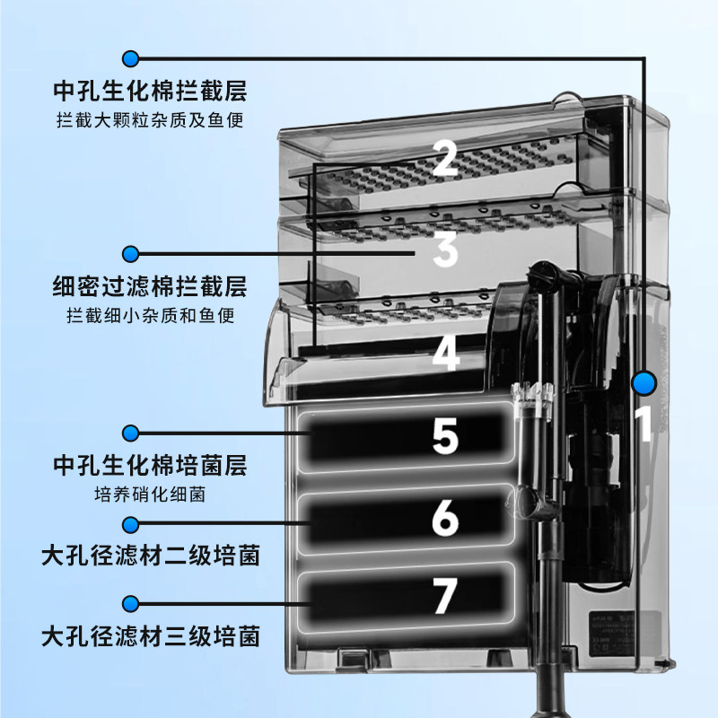 鱼缸过滤器过滤循环水泵制氧一体机小鱼缸壁挂式小型三合一瀑布式