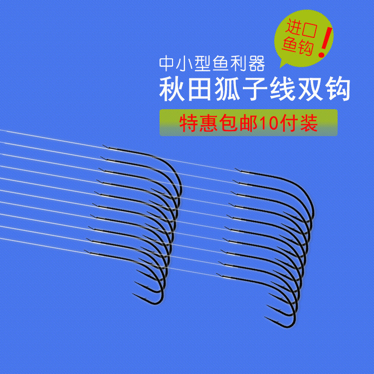 淘宝秋田狐钓鱼钩绑好子线双钩成品不跑鱼的鱼钩细条正品日本进口极细