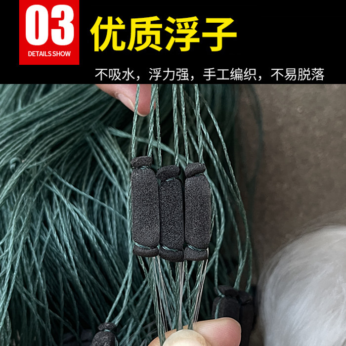 淘弧月纲小套绿丝三层渔网粘网丝网捕鱼网收纲加密沉网泓宇