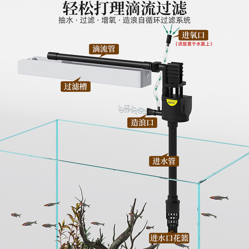 淘鱼缸过滤器过滤循环水泵制氧一体机小鱼缸壁挂式小型三合一瀑布式