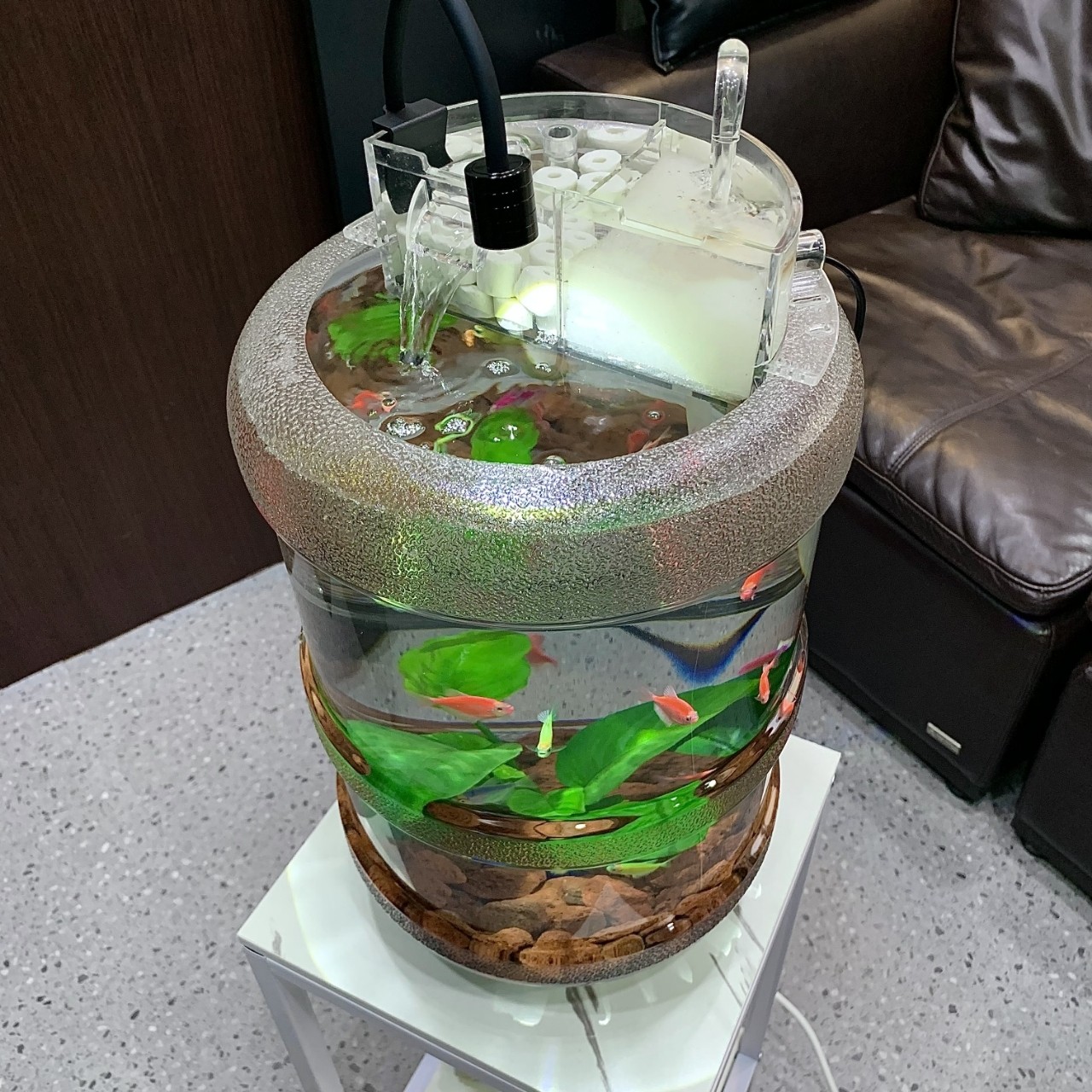 【送滤材滤棉】桶装水改鱼缸过滤循环系统上置圆形养鱼专用过滤器,专为小型鱼缸或观赏鱼爱好者设计。采用优质环保材料制成,结构紧凑,安装简便,可直接放置于鱼缸上方,节省空间。内置高效过滤系统,搭配赠送的滤材与滤棉,有效过滤杂质、吸附异味、培养硝化细菌,实现水体循环净化,保持水质清澈。圆形设计美观实用,适合金鱼、孔雀鱼等小型观赏鱼使用。通过物理与生物双重过滤,显著提升水体含氧量与自净能力,减少换水频率,为鱼儿营造健康生活环境。是家庭、办公室养鱼的便捷之选。