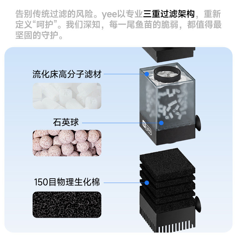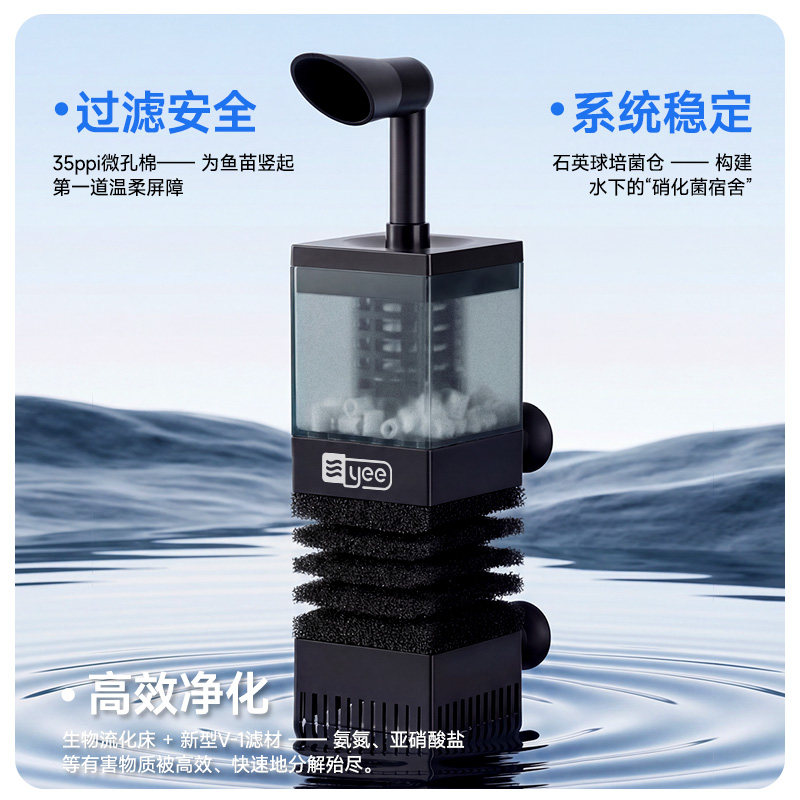 天猫yee水妖精过滤器净水循环三合一静音氧气泵小型鱼缸过滤器反气举