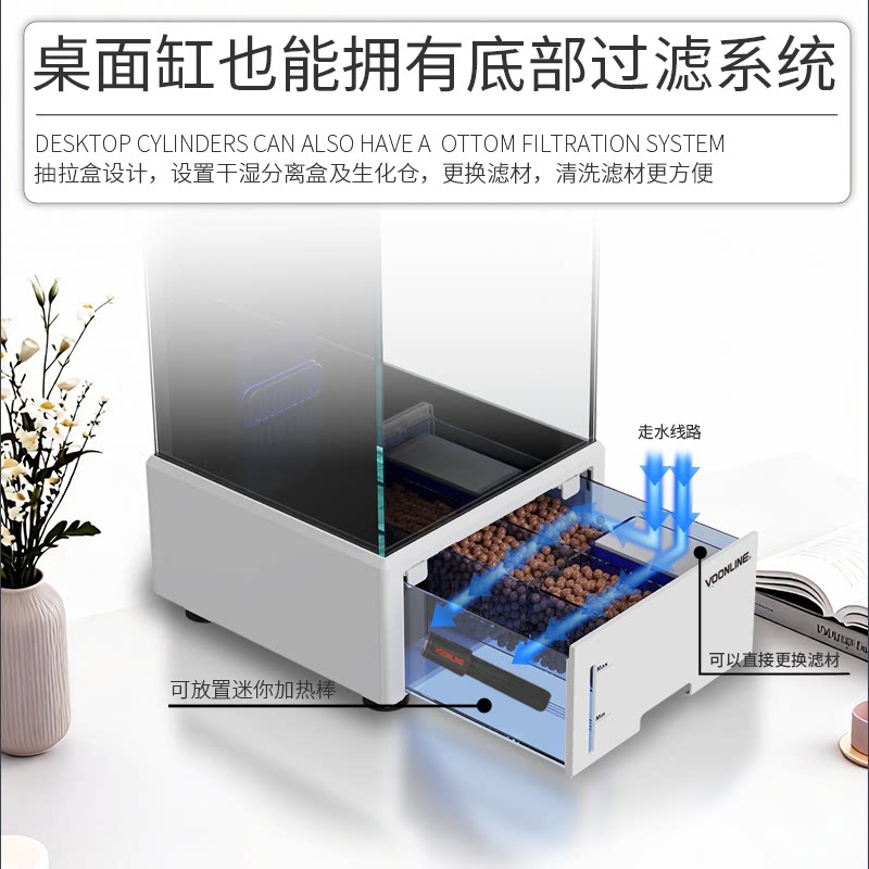 淘宝沃韦朗桌面鱼缸底滤小型玻璃水草缸客厅家用生态缸一体机循环过滤