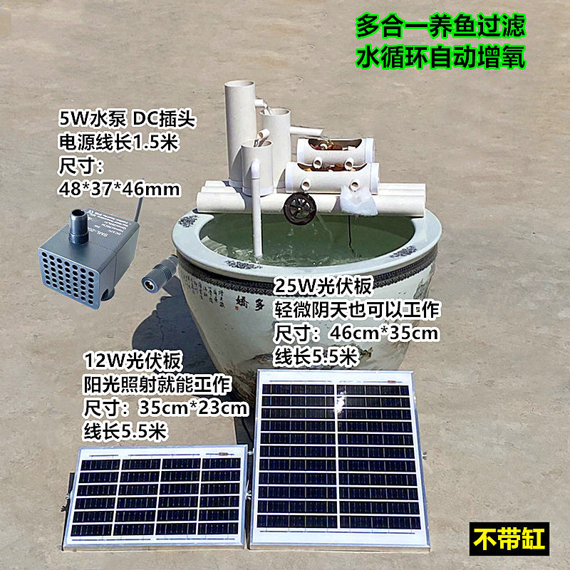 淘宝全自动太阳能鱼缸过滤水循环系统鱼盆不插电自动增氧泵鱼池流水器