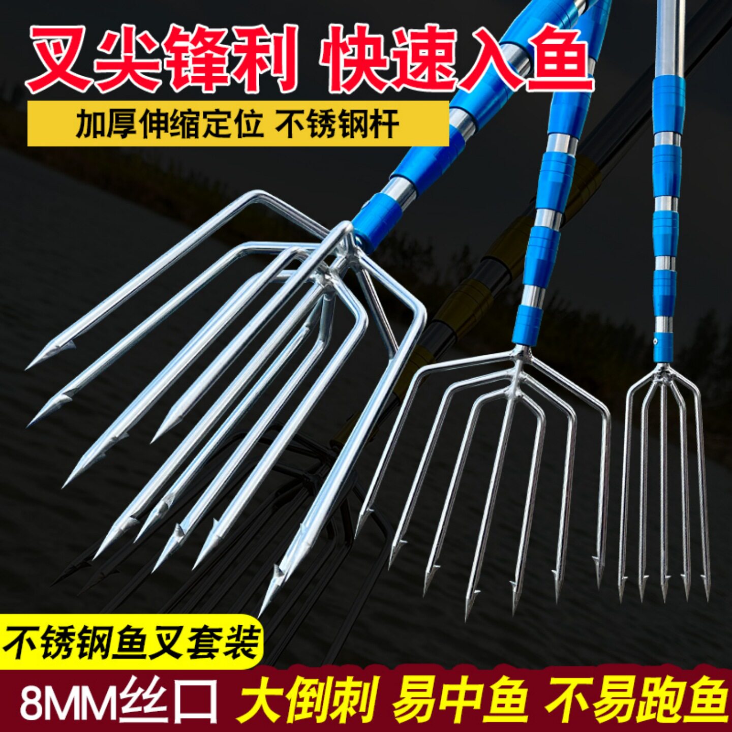 淘宝大倒刺不锈钢鱼叉加厚伸缩杆捕鱼叉头老式渔叉鱼插鱼叉子扎鱼器