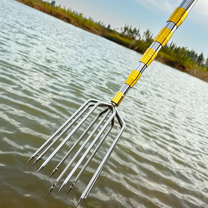 淘宝大倒刺鱼叉不锈钢头捕鱼叉头多功能加厚伸缩杆老式渔叉鱼插鱼叉子