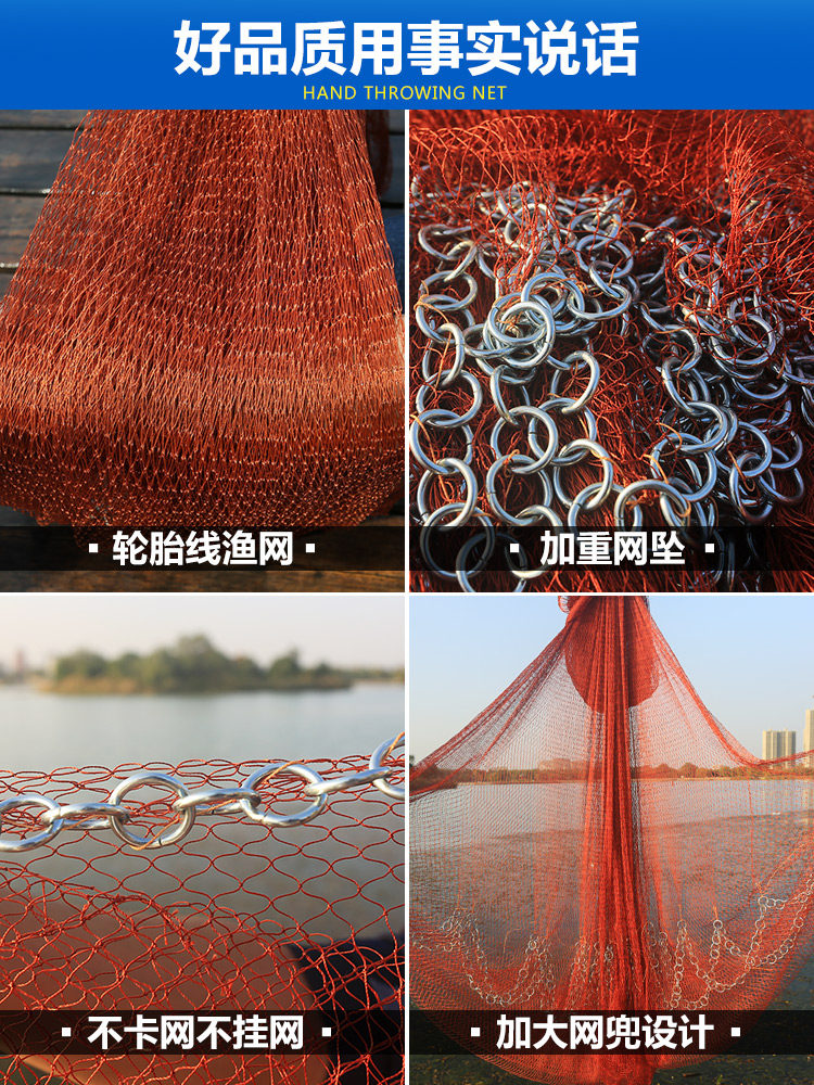天猫铁链老式传统手撒手抛网鱼网撒网渔网捕鱼抛网甩易抛旋网自动渔具
