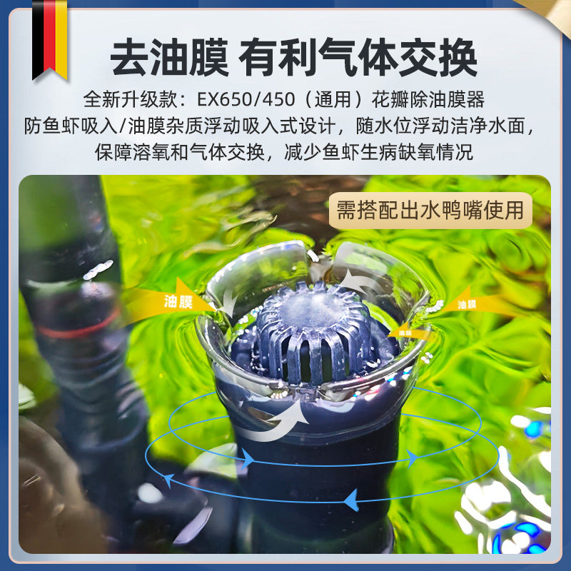 安彩EX450鱼缸吸粪过滤器全自动款是一款集吸粪、过滤、加氧于一体的高效水族设备,专为低水位环境设计。其全自动运行模式可智能识别粪便与残饵,强力吸附并高效过滤,保持水质清澈。内置多层过滤系统,有效去除杂质、培养有益菌群,同时配备静音加氧泵,提升水中溶氧量,促进鱼类健康生长。特别适用于浅水鱼缸、繁殖缸或低水位生态缸,运行稳定、安装简便,无需频繁维护。安彩EX450以科技赋能养鱼体验,实现清洁、增氧、过滤一体化管理,是追求便捷高效水族养护的理想之选。