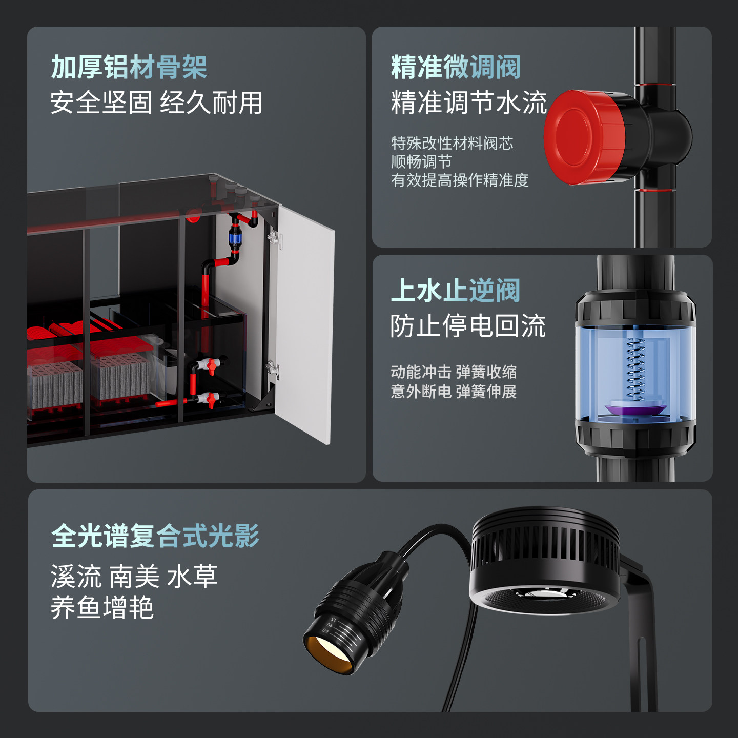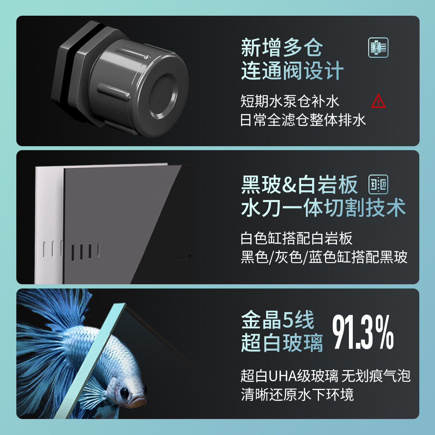 淘方缸海水缸背过滤方缸水刀切割黑玻鱼梳金晶超白桌面小鱼缸水族箱