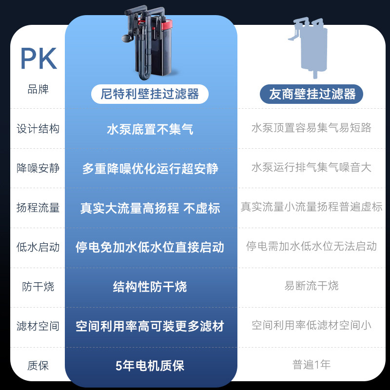 天猫尼特利鱼缸过滤器壁挂过滤桶外置小型静音外挂式草缸专用除油膜