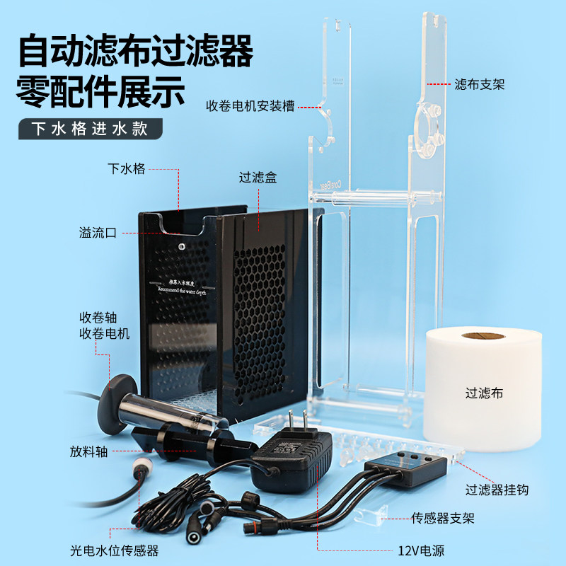 淘宝CoralBear珊瑚熊鱼缸自动干湿分离滤布过滤器过滤盒卷纸机淡海水