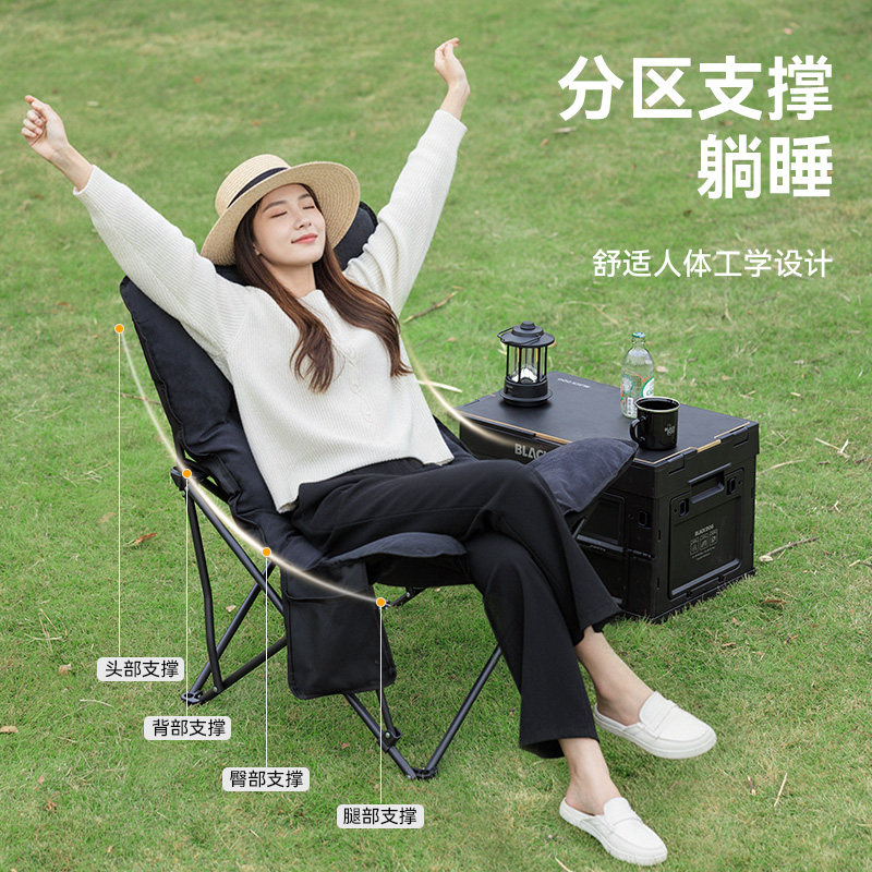 天猫BLACKDOG黑狗户外折叠椅子便携躺椅户外钓鱼椅沙滩椅露营椅月亮椅