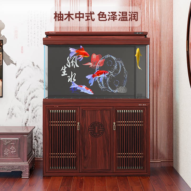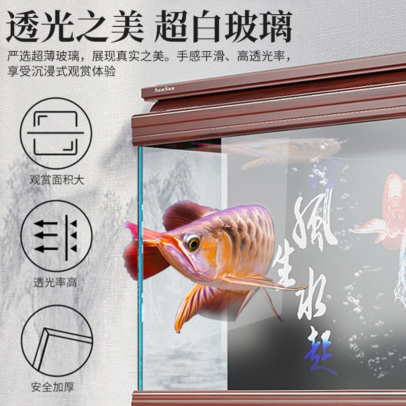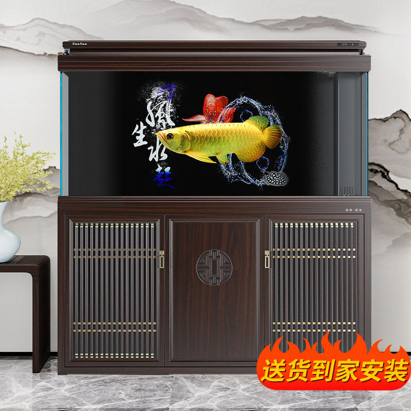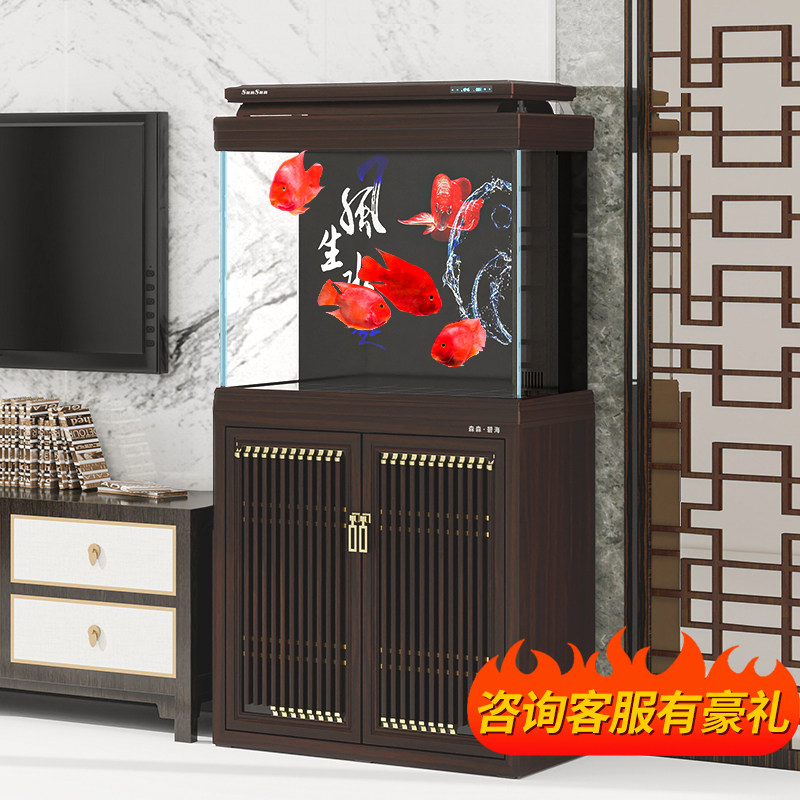 天猫森森鱼缸大型超白玻璃客厅中式鱼缸水族箱客厅屏风生态鱼缸龙鱼缸