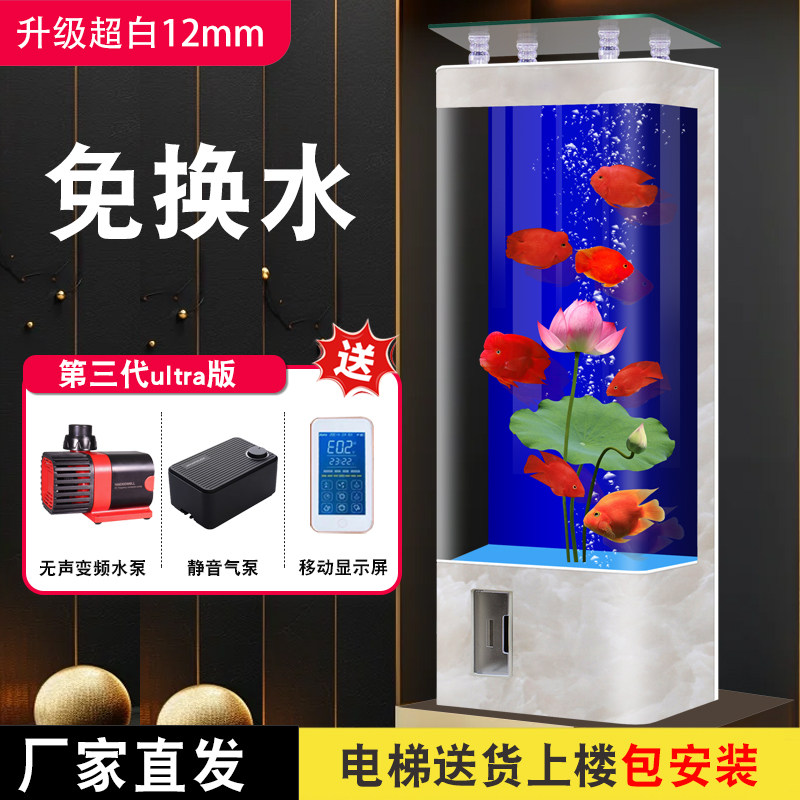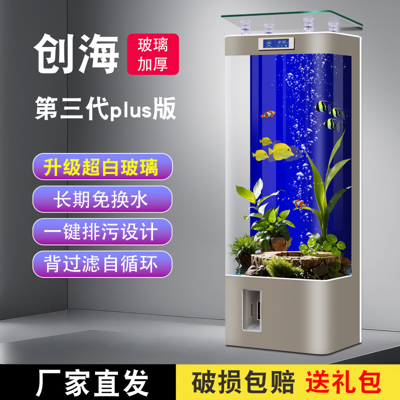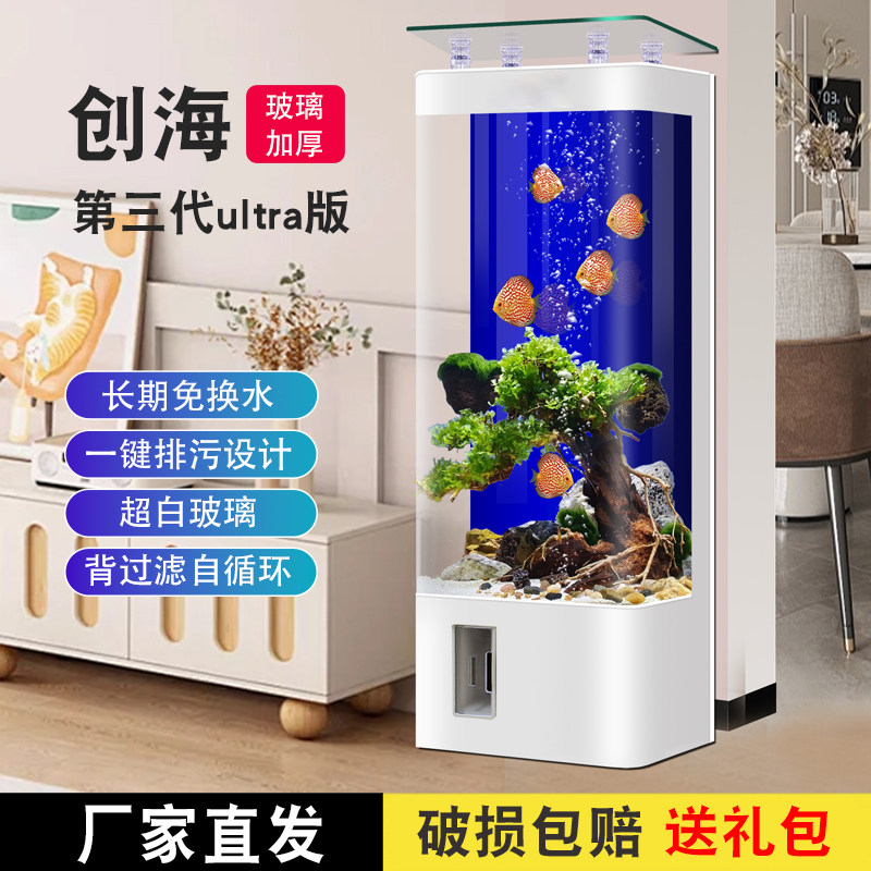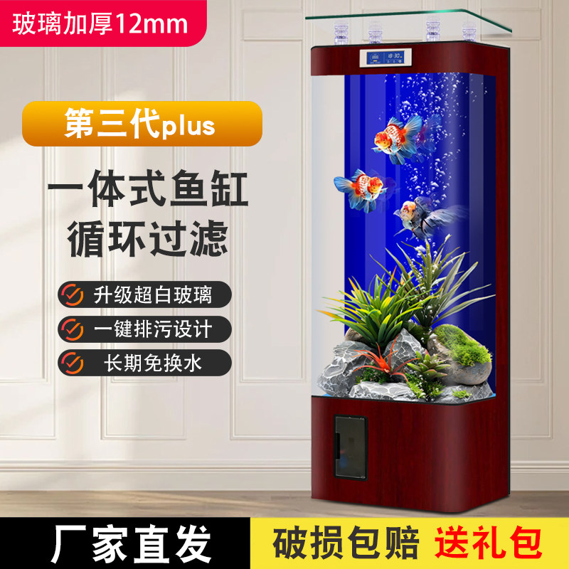 淘宝鱼缸客厅2026新款一体成型超白玻璃中小型过滤一体智能免换水族箱