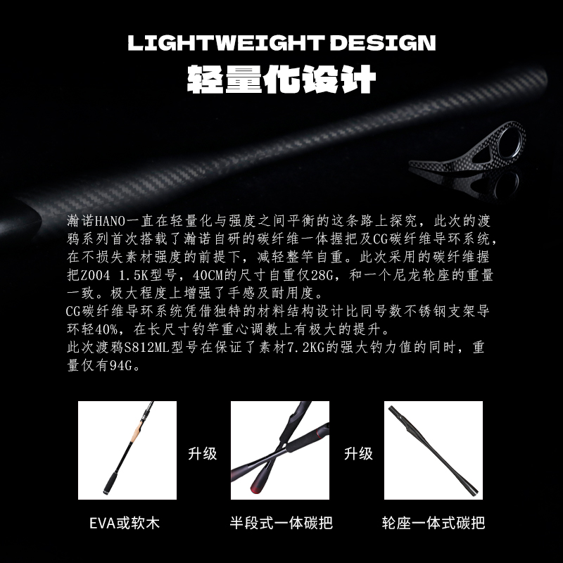 淘宝HANO瀚诺鸦骸渡鸦超轻量化小锥度远投路亚竿一周年限定碳素钓鱼杆