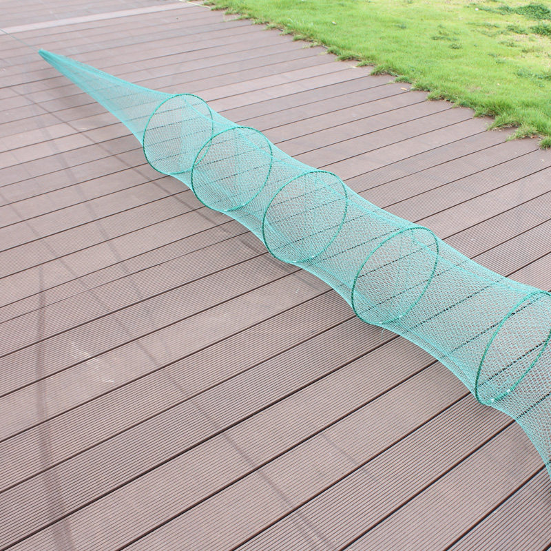 结网鱼笼是一种传统高效的水产捕捞工具,通常由网兜、网头、网尾、尾梢及袖子等部件组成。其结构设计巧妙,网头设有入口,内壁光滑,便于鱼虾游入;网身呈圆筒状,由柔性网布制成,可适应不同水域环境;网尾和尾梢采用加密工艺,增强耐用性并防止猎物逃脱。袖子部分可调节松紧,便于收放和清理捕获物。整体轻便易携,适用于溪流、池塘、湖泊等多种水域,广泛用于捕捞鱼类和虾类。结网鱼笼操作简便,对生态环境影响较小,是渔民常用的可持续捕捞方式之一,兼具实用性与经济性。