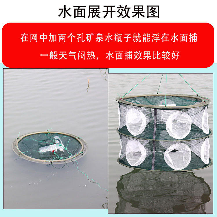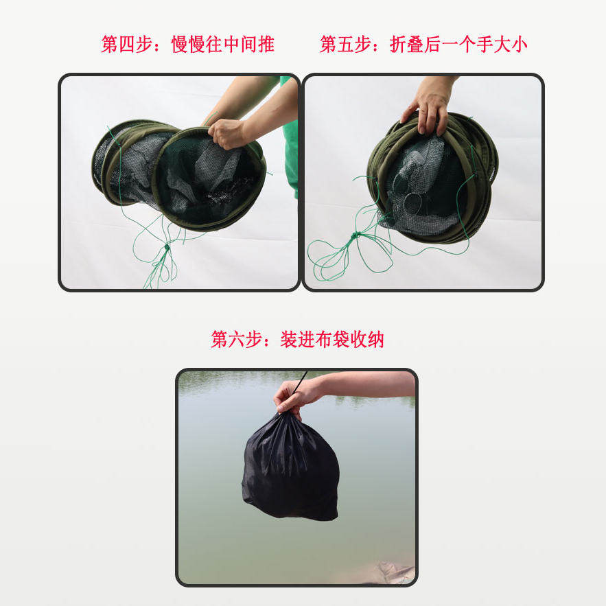 淘6嘴加粗不锈钢白色折叠捕鱼笼 抓虾笼虾网圆形捕鱼网渔网龙虾笼