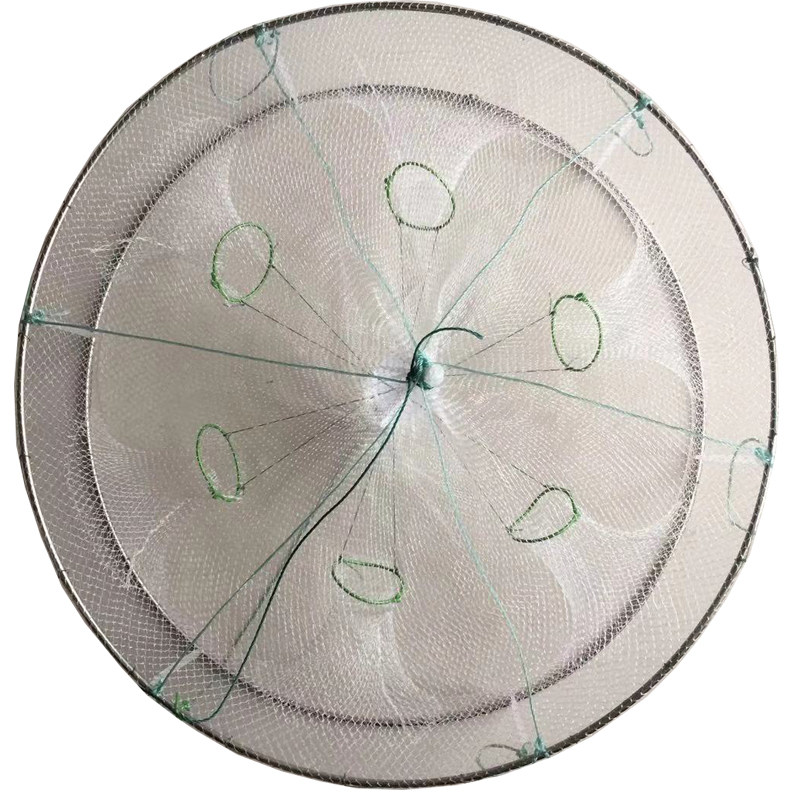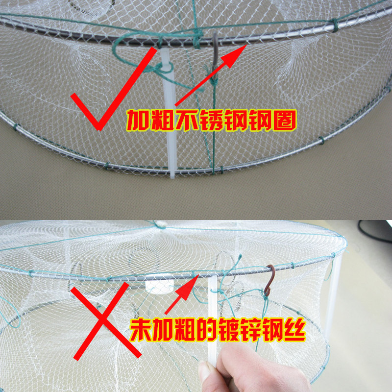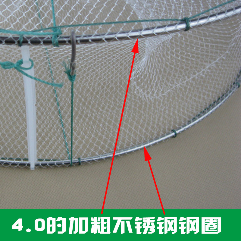 淘宝6嘴加粗不锈钢白色折叠捕鱼笼 抓虾笼虾网圆形捕鱼网渔网龙虾笼