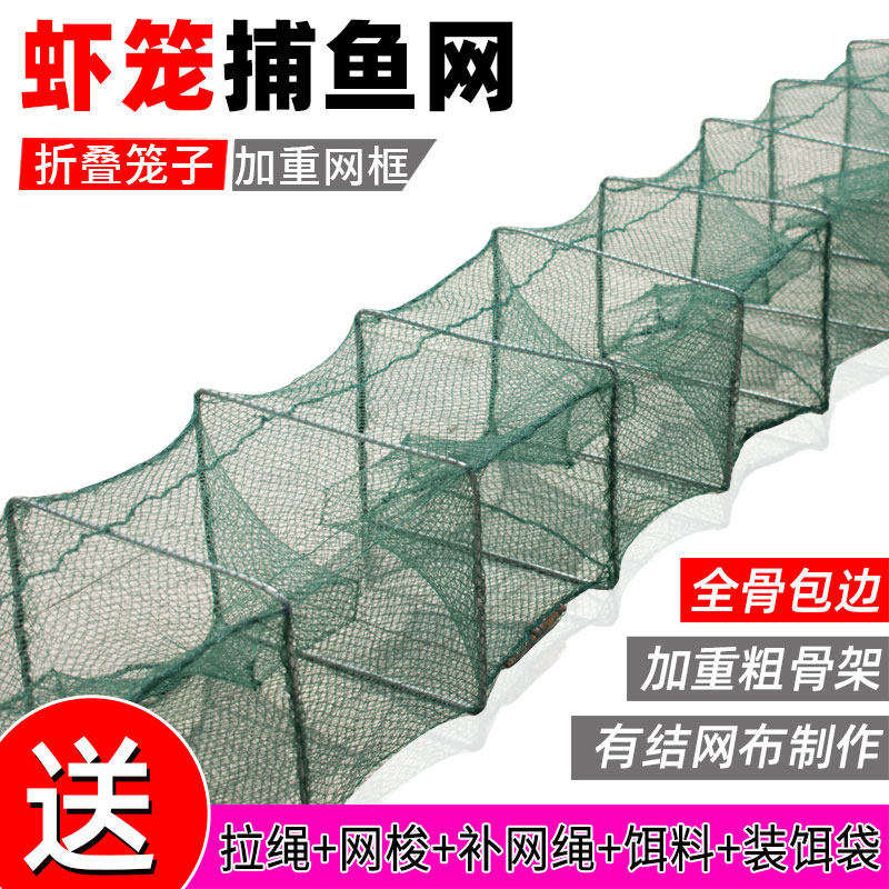 天猫虾笼渔网龙虾鱼网 加厚自动捕鱼工具折叠抓鱼笼泥鳅黄鳝笼河虾网