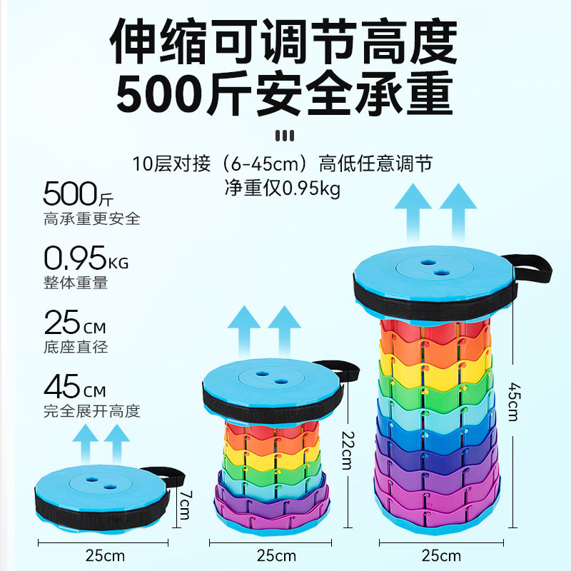 天猫户外便携折叠凳子椅子彩虹折叠凳子伸缩可调节板凳钓鱼火车小凳子