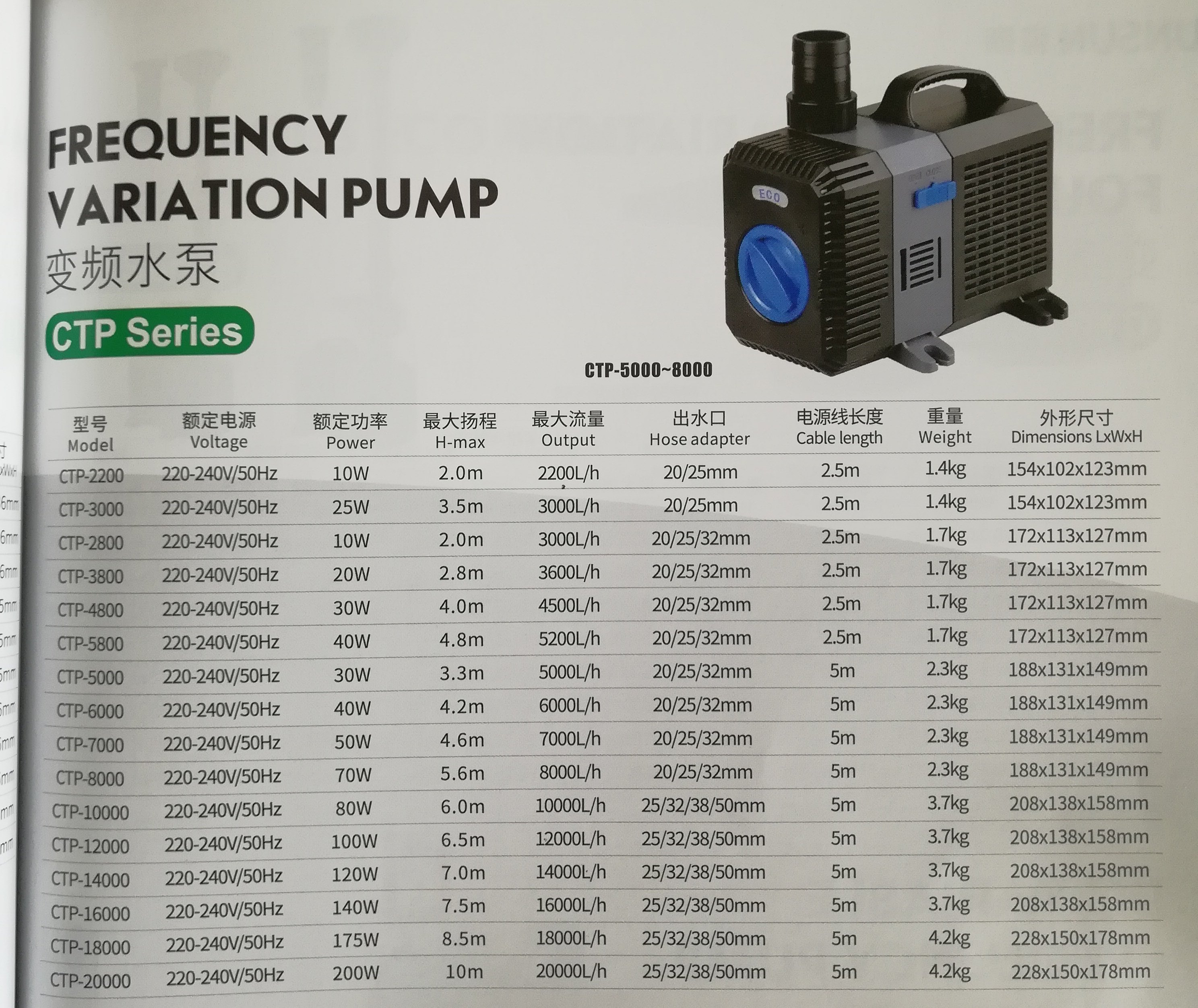 淘宝格池CTP-5000/6000/7000/8000/9000/10000/12000/16000鱼缸潜水泵