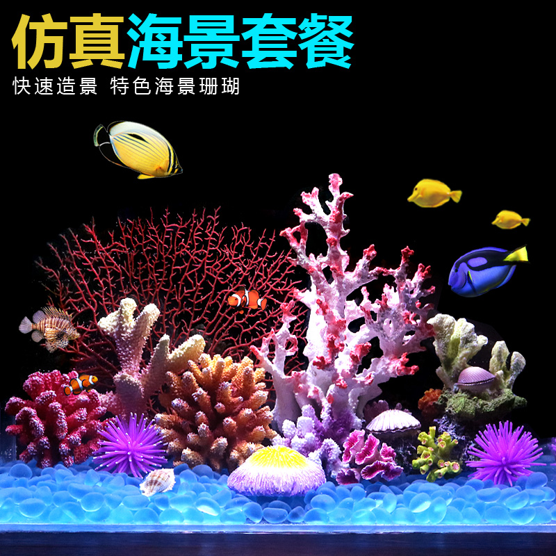 天猫鱼缸仿真珊瑚造景全套餐组合水族箱海水装饰贝壳假水草珊瑚礁布景
