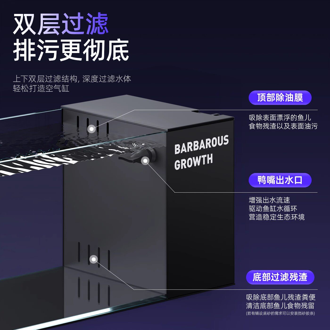天小型鱼缸过滤器静音水泵壁挂式三合一循环净水迷你过滤制氧一体机