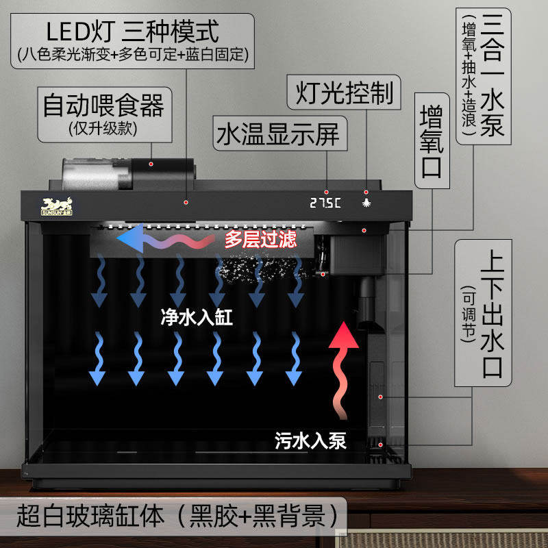 鱼缸过滤制氧一体机小型过滤器小鱼缸氧气泵一体式全自动款家用