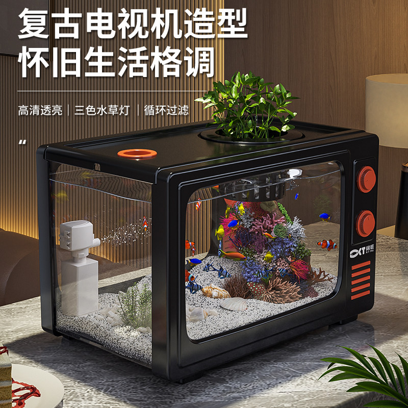 天猫鱼缸客厅2025新款造景摆件过滤制氧一体机网红创意复古电视小鱼缸