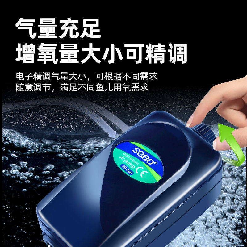 松宝静音增氧泵是一款专为水族爱好者设计的大功率增氧设备,适用于各类鱼缸、水族箱及观赏鱼养殖环境。采用先进静音技术,运行平稳低噪,有效避免干扰家居生活。强劲动力输出,可快速提升水中溶氧量,保障鱼类健康生长,特别适合高密度养殖或高温季节使用。内置优质气石,气泡细腻均匀,增氧效率高。产品具备防水防溅设计,安全稳定,使用寿命长。支持多档调节,满足不同水体需求。无论是淡水缸、海水缸还是草缸,松宝增氧泵都能提供持久稳定的氧气供应,是维护水族生态平衡的理想之选。