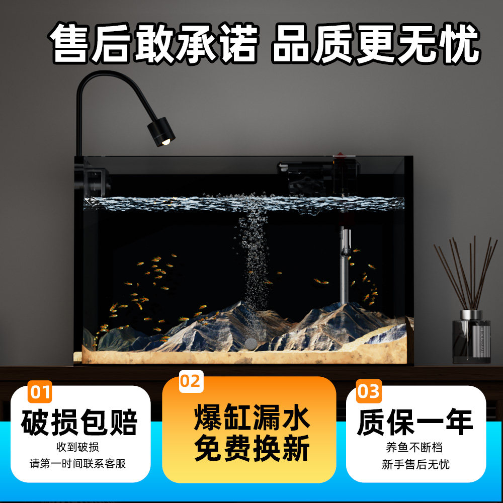 天猫金晶超白玻璃金鱼缸小型客厅2025新款过滤制氧一体机家用造景全套