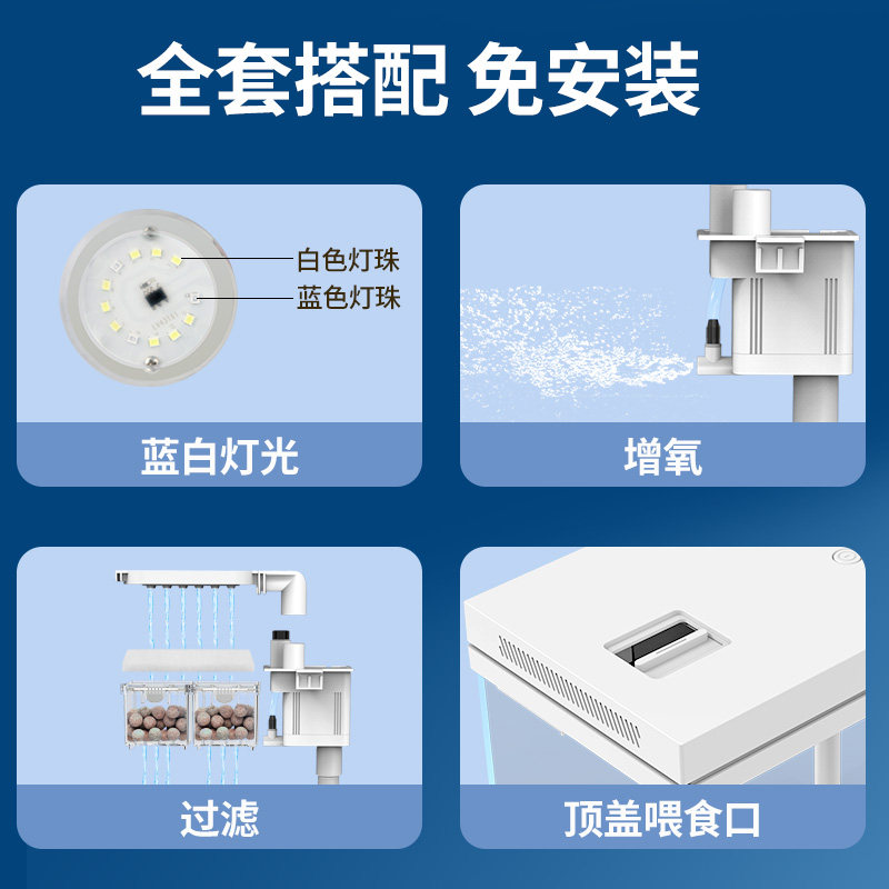 桌面鱼缸小型客厅2026新款过滤制氧一体机生态造景家用金鱼缸