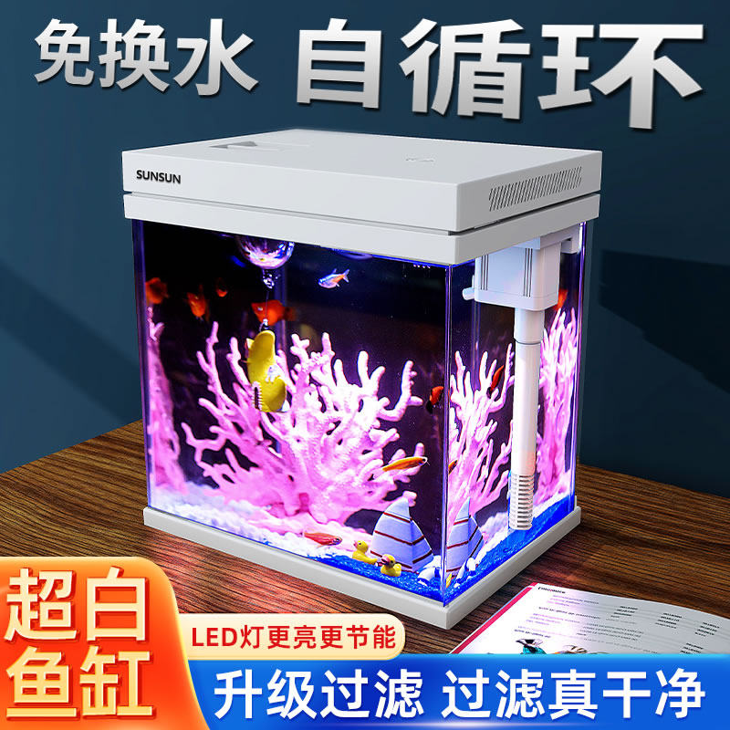 天猫森森超白鱼缸过滤制氧一体机自循环客厅水族箱桌面懒人小型玻璃