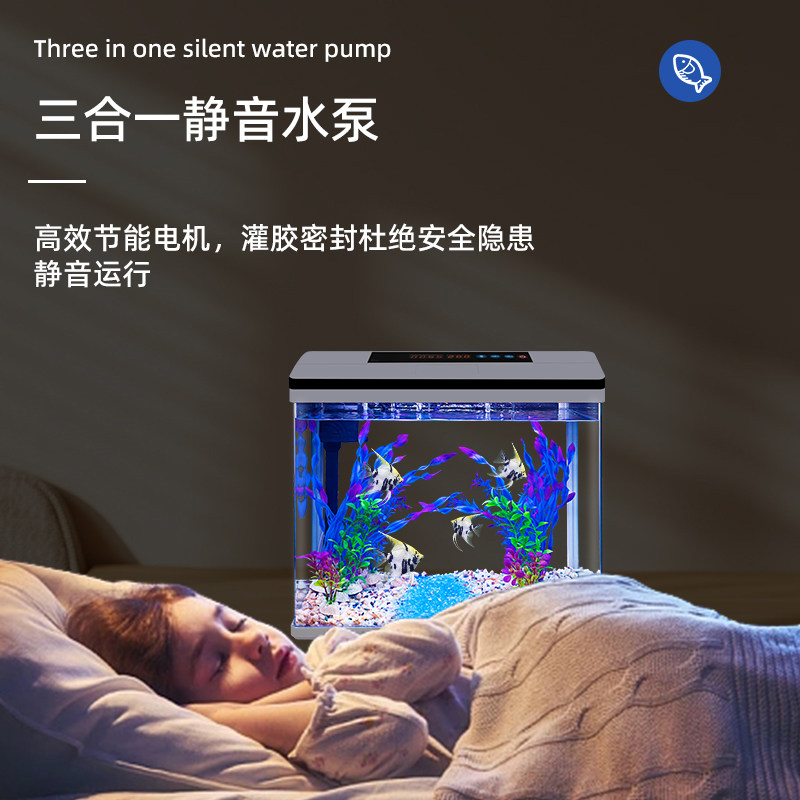 这款新鱼缸是专为现代家庭设计的客厅过滤制氧一体缸,集美观与实用于一体。采用高透光钢化玻璃材质,搭配精巧桌面小型造景,营造自然生态水景,提升家居格调。内置高效静音过滤系统,实现水循环与增氧同步运行,有效分解杂质、保持水质清澈,真正实现免换水自循环,极大降低维护频率。适合养小型观赏鱼如水草灯鱼、孔雀鱼等,是忙碌都市人的“懒人神器”。无需频繁打理,仅需定期补水即可长期维持生态平衡,让养鱼变得轻松惬意,为生活增添一抹灵动绿意。