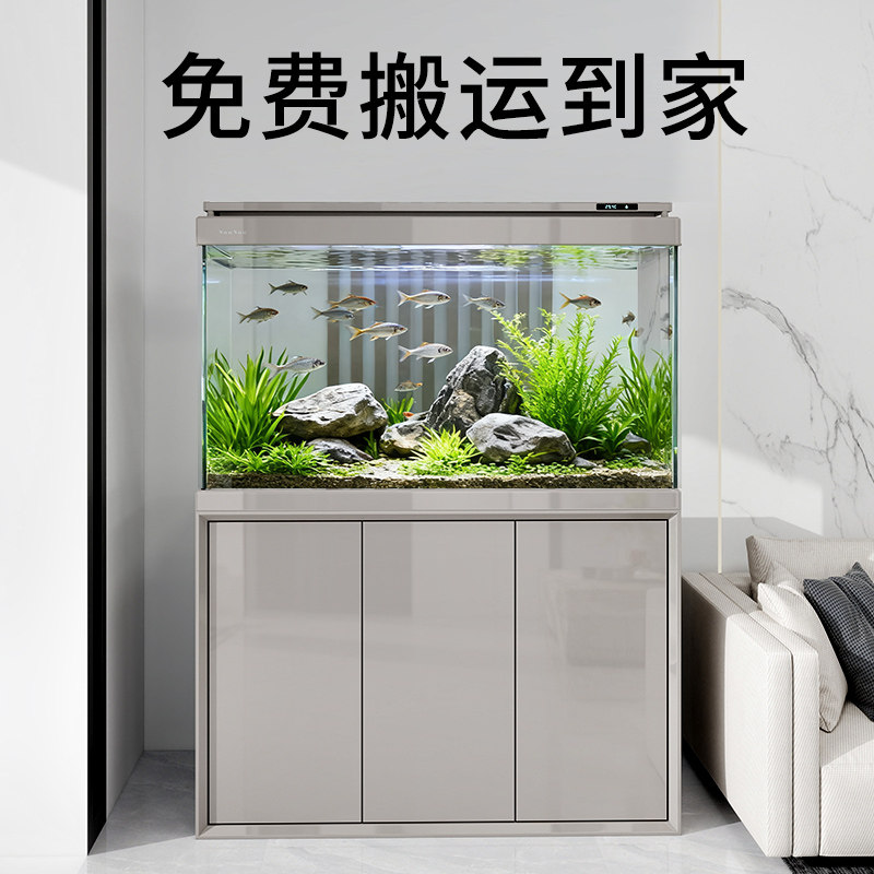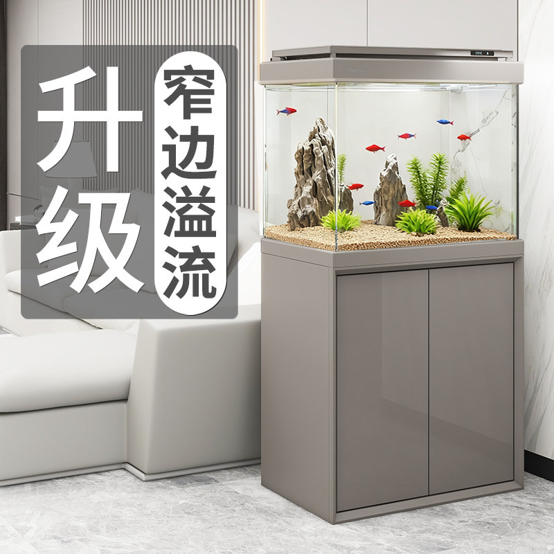 天猫森森新款窄溢流底过滤鱼缸 超白玻璃隔断屏风客厅家用大型水族箱