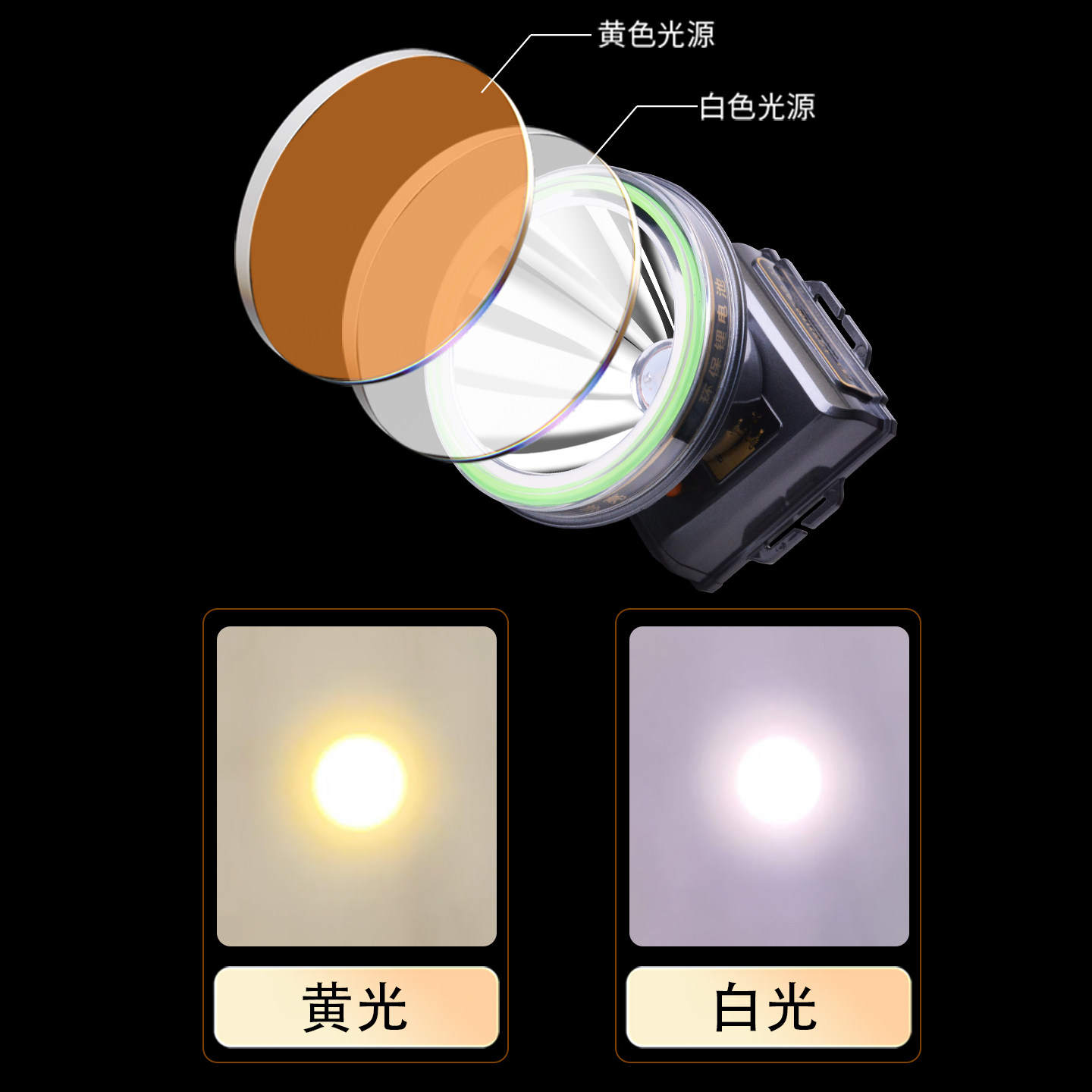 黄光头灯新款大容量锂电池头戴式赶海夜钓钓鱼专用强光超亮长续航