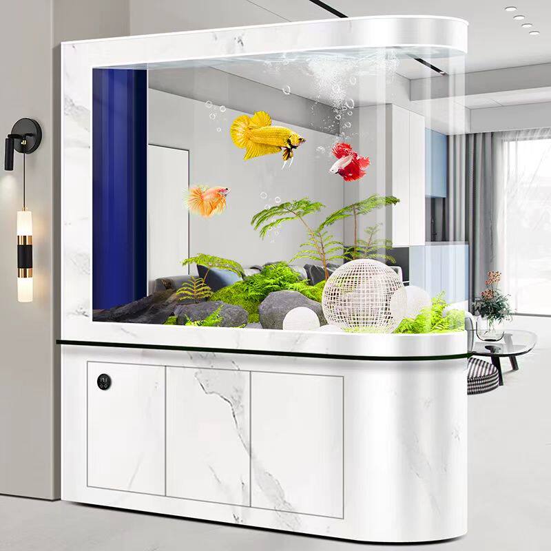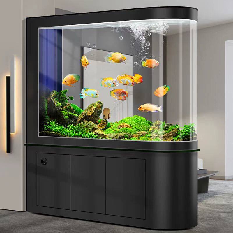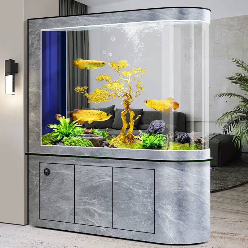 淘宝新款鱼缸子弹头中大型底部过滤客厅家用办公室隔断轻奢屏风水族箱