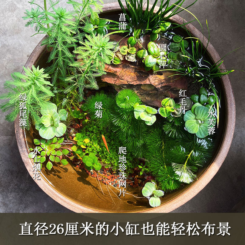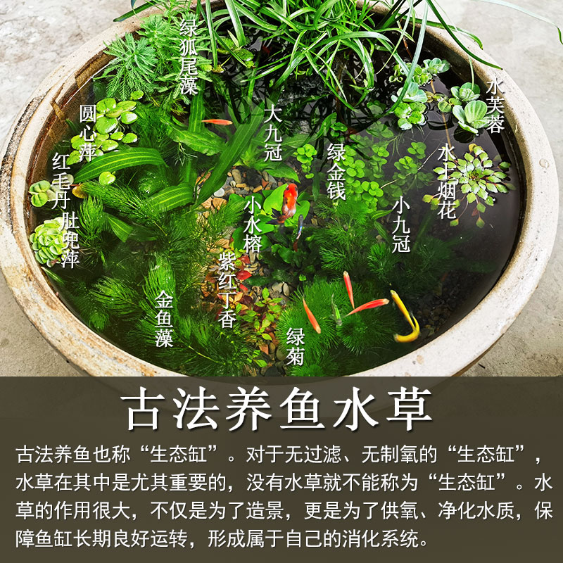 淘宝古法养鱼水草懒人净化水质植物造景套餐绿九冠绿菊浮萍生态原生缸