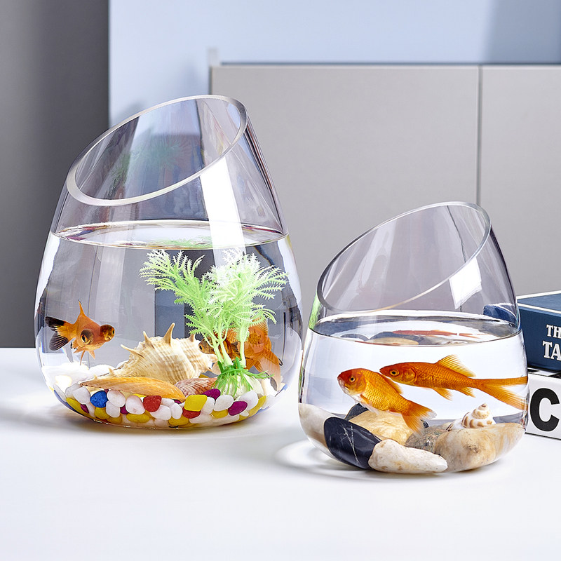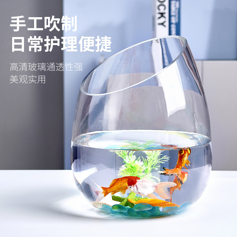 淘宝办公室小鱼缸加厚透明玻璃乌龟缸客厅家用桌面圆形斜口小型金鱼缸