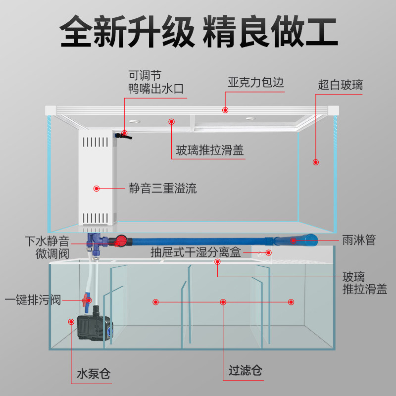 淘宝金晶超白玻璃底滤一体缸中型鱼缸家用办公室水族箱客厅家用